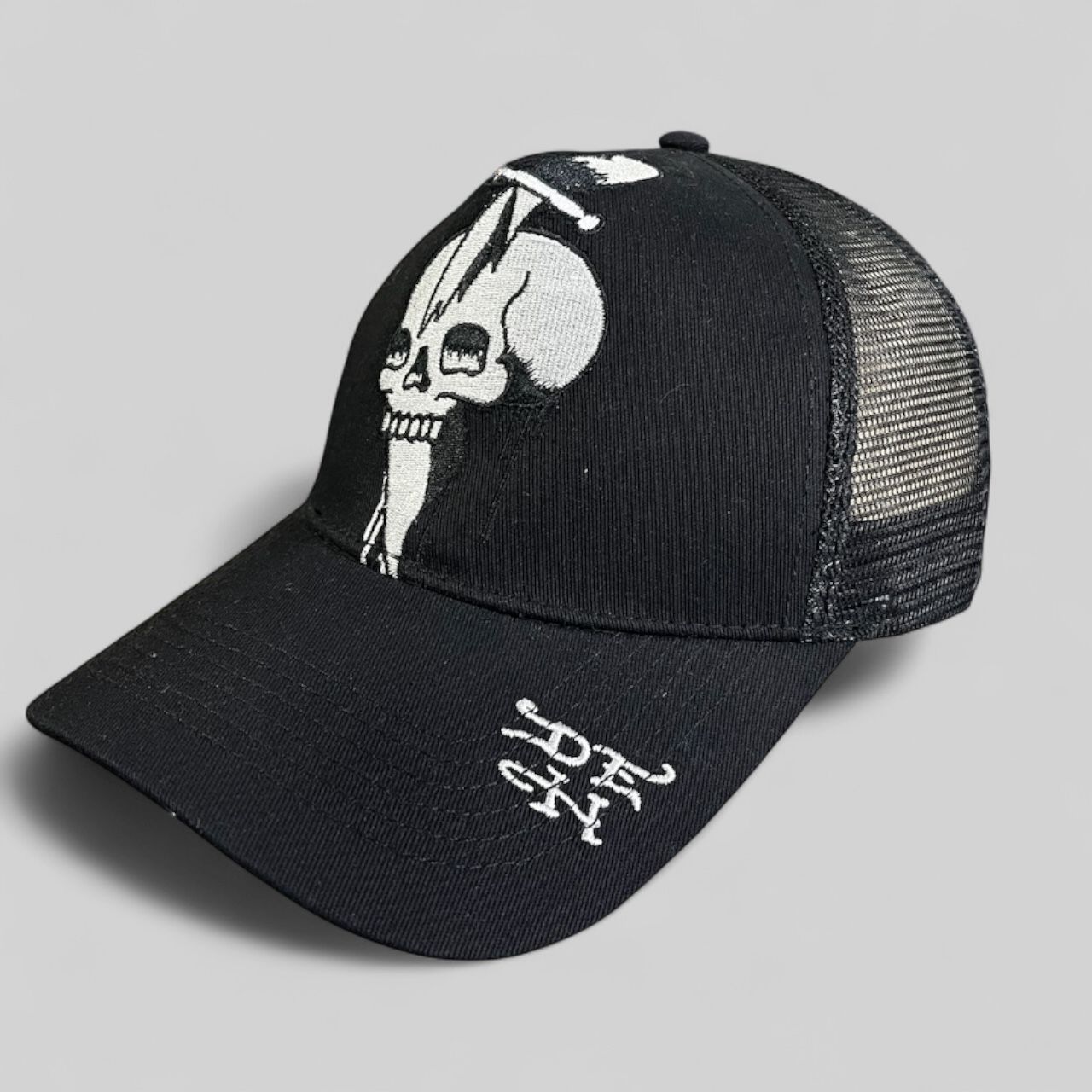 * Gorras de Béisbol y Trucker: Son las más comunes. Llevan el diseño de la calavera estampado, bordado o en un parche en la parte frontal. Suelen ser usadas para un estilo casual y urbano.