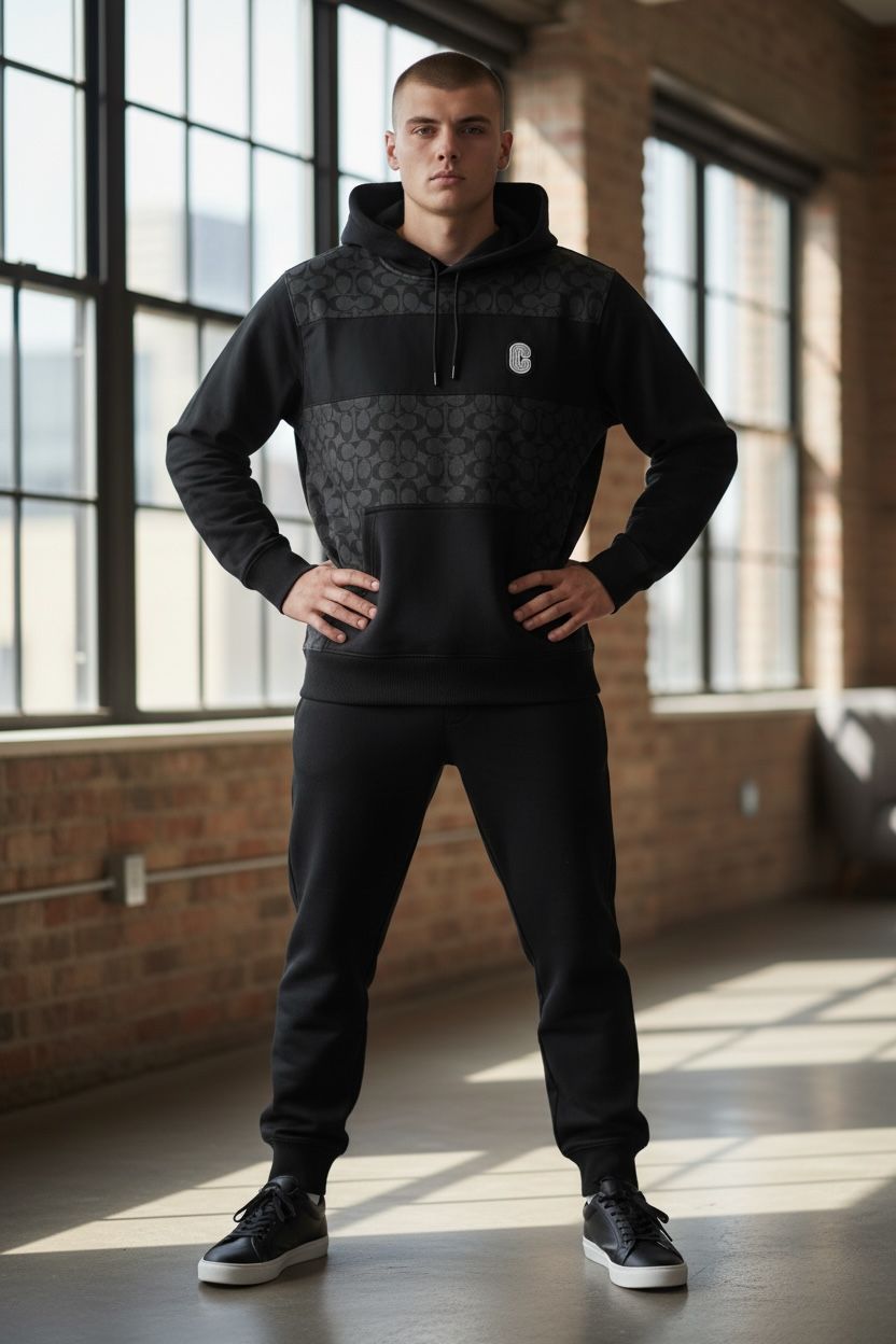 * Sudadera de la marca Coach: Una sudadera de lujo de la marca Coach New York, confeccionada en materiales de alta calidad (como algodón premium), que se usa como prenda casual de moda.