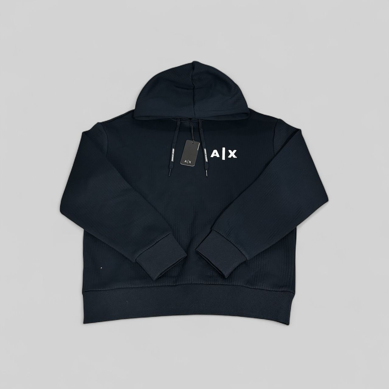 Dale un toque moderno y sofisticado a tu look con este exclusivo polerón Armani Exchange (A|X). Confeccionado en tela suave de alta calidad, este modelo en color azul marino ofrece comodidad y estilo para cualquier ocasión. Ideal para usar en días fríos o como prenda casual para destacar con un diseño minimalista y elegante.