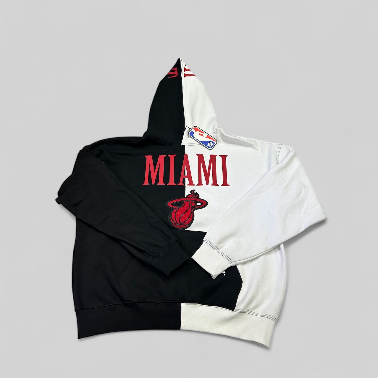 Destaca tu pasión por el baloncesto con este polerón oficial de la NBA inspirado en el equipo Miami Heat. Su diseño bicolor en blanco y negro con el logo bordado y la palabra MIAMI al frente en rojo vibrante lo convierte en una prenda llamativa y moderna. Fabricado en algodón suave y de alta calidad, ofrece comodidad y abrigo ideal para el día a día. Cuenta con capucha ajustable, bolsillo tipo canguro y puños elasticados para un calce perfecto. Ideal para fanáticos del deporte y la moda urbana.